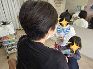 4月から小学生になるお姉ちゃんが、お母さんの髪の毛がどうなるのか!?心配で見守るなか、とても賑やかなヘアドネーションとなりました。